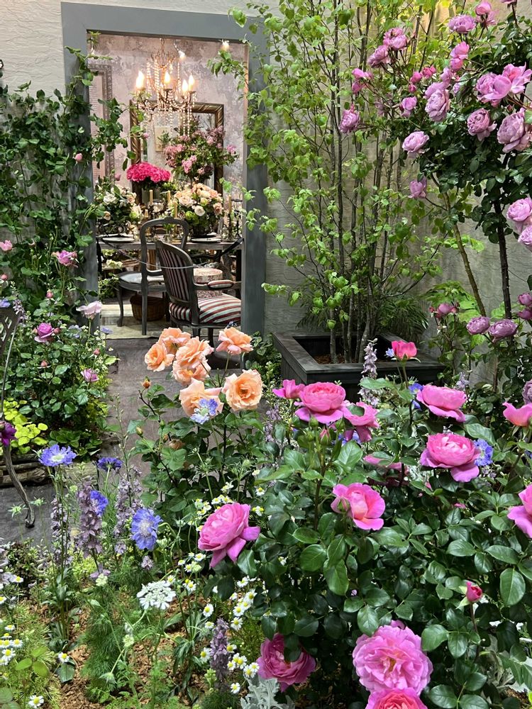フラワーデザイナーローラン・ボーニッシュさんによる『フレンチローズが咲く庭に佇む小さな家』の展示デザインです