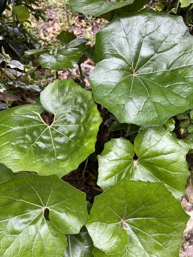春を迎えた庭のツワブキの葉っぱです。元気そうでなにより。