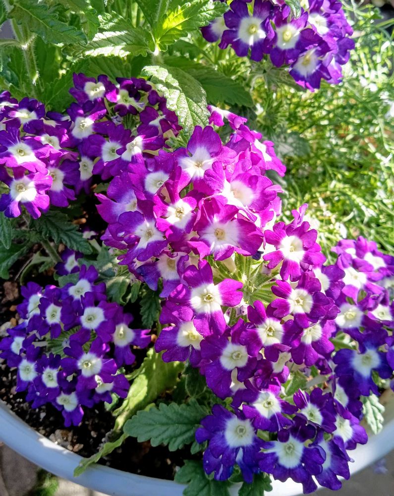 我が家の4種類の色のバーベナ🌸全部咲き揃い賑やかになりました🥰