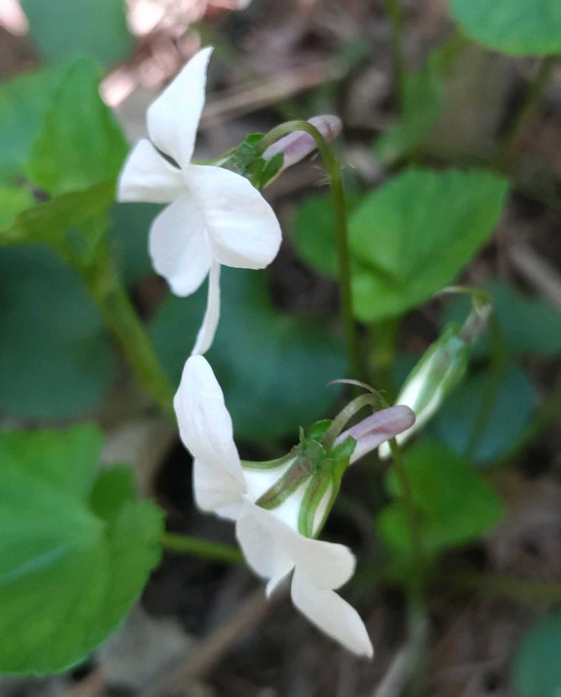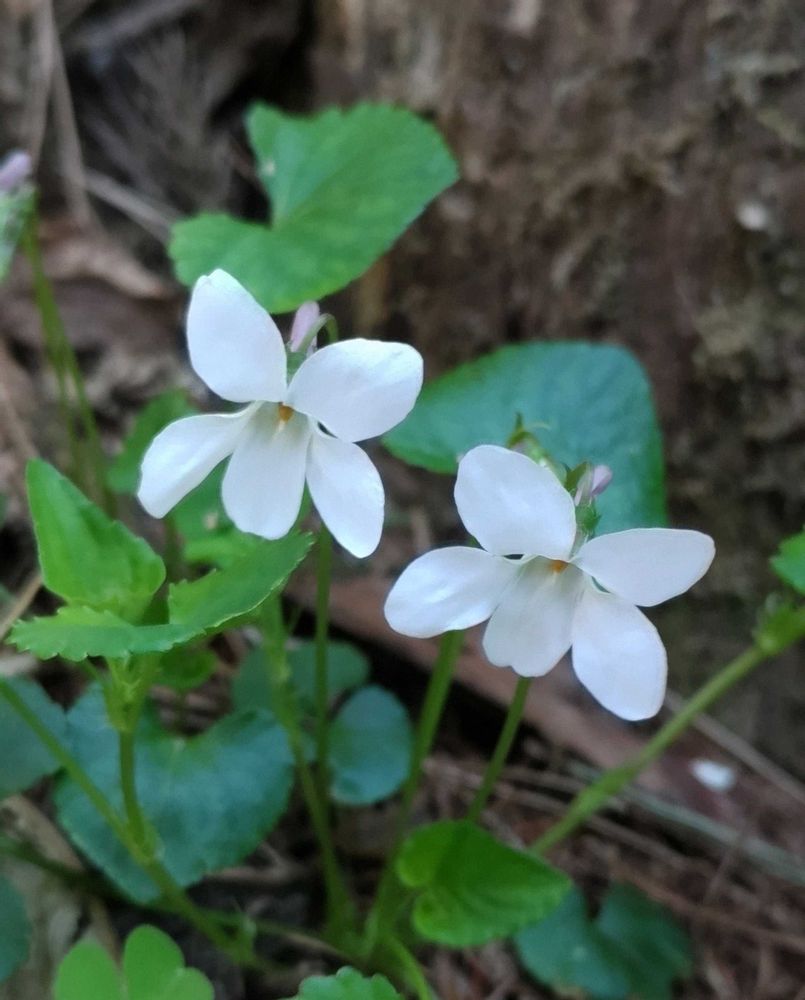 ①②③ヒカゲスミレ…沢沿いの林のふちなど、湿り気のある半日陰の場所に生えるスミレ、登山口付近に咲いていました🤍🌿