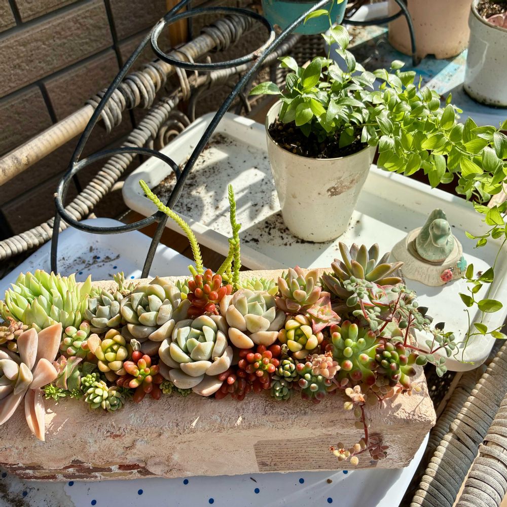 GSの皆様に頂きました多肉も使って、るるさんの半月リメ缶と、リースの寄せ植えも作り直しました!!が、例によって誰に貰った苗か分からなくなってしまった物があるので、お名前載せられなくてスミマセン🙇♀️