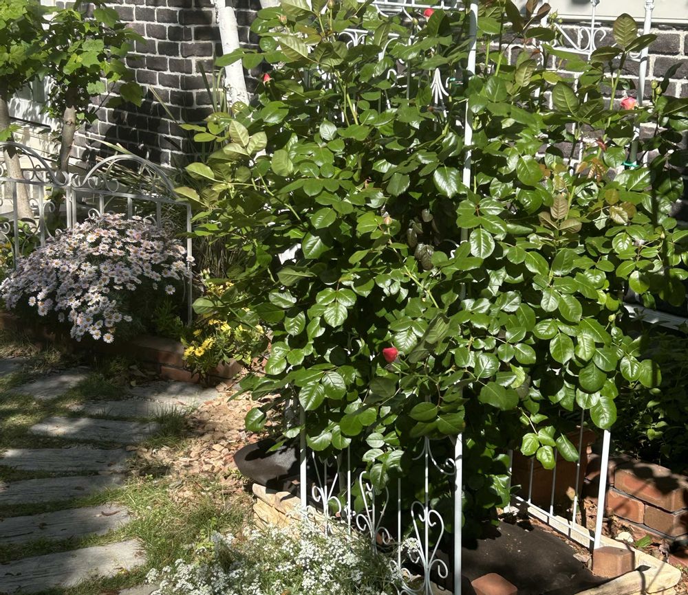 昨年秋にお迎えしたケルナーフローラが開花しました🥰一度別のバラを植え付けたもののうまく根づかず枯れてしまった場所でしたが、土壌改良して再トライしたら気に入ってもらえたようです☺️やっぱり土は大事ですね🧐