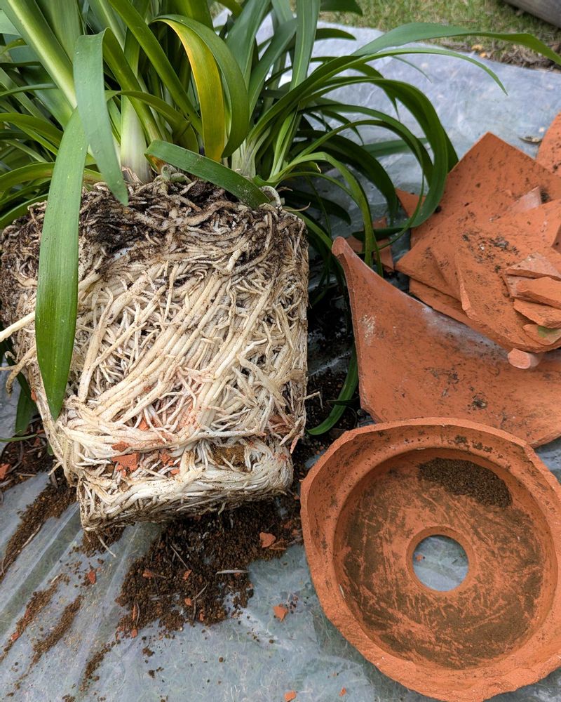パンパンで抜けないので、お庭のレンガで植木鉢を破壊しました😭