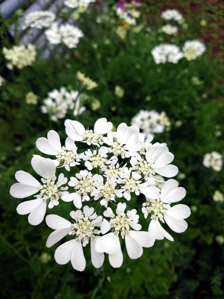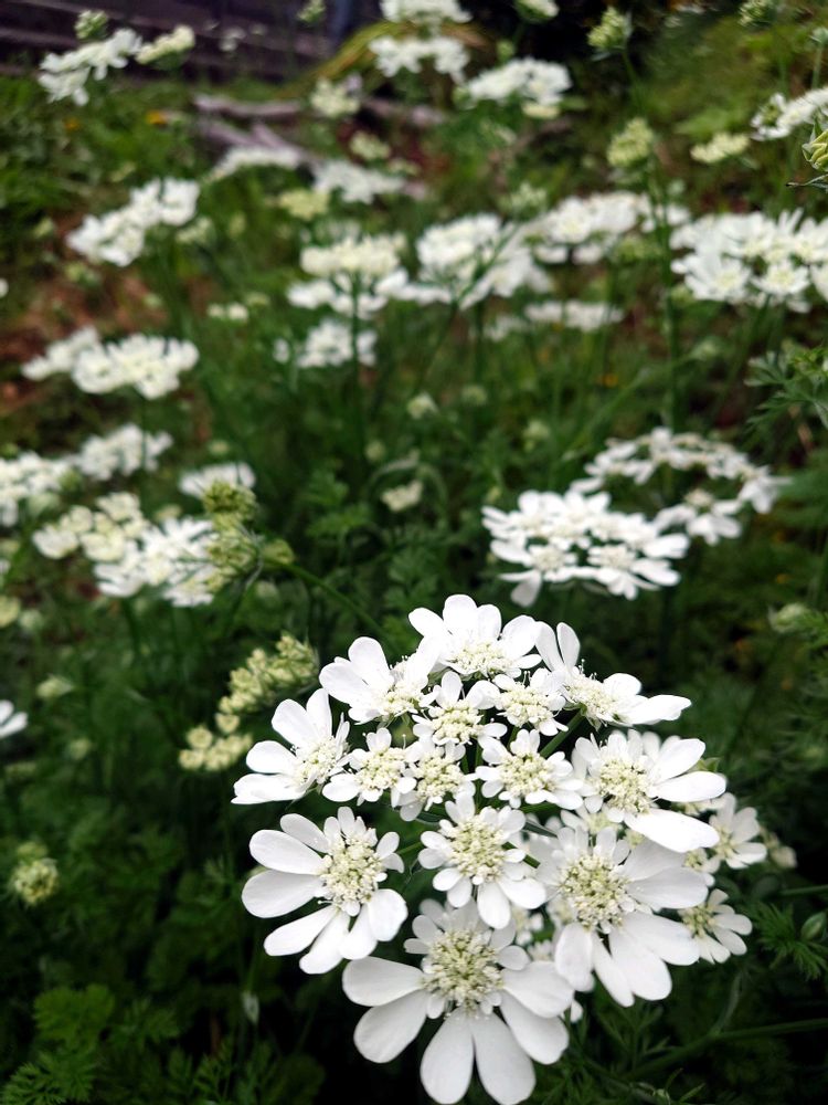 my Garden🌼タネから育て、こぼれ種に助けられながら3年目のオルレアさんがやっとオルレア畑になりました👏✨️益々広がって欲しい清楚で可愛く美しいお花です😊🤍🤍🤍🤍🤍オルレアさんをみていると、なんだか自分が清純な心の美しいお姫様👰になった妄想にかられます🤣(笑)