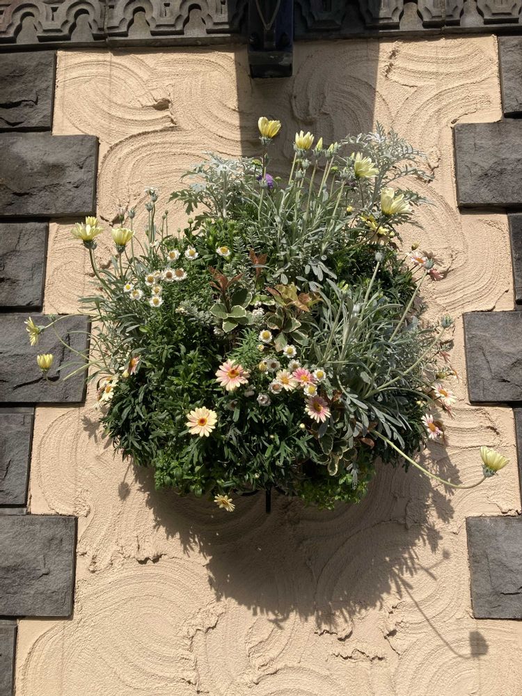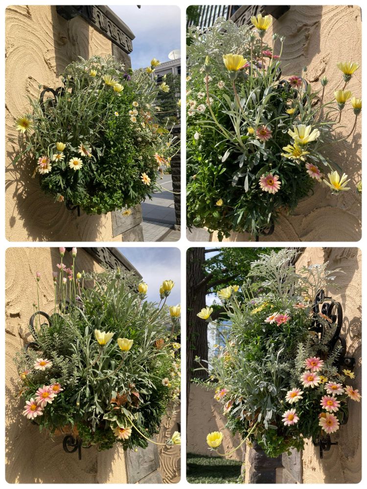 "赤坂プリンスクラシックハウス"の門柱を飾るハンギングフラワー。