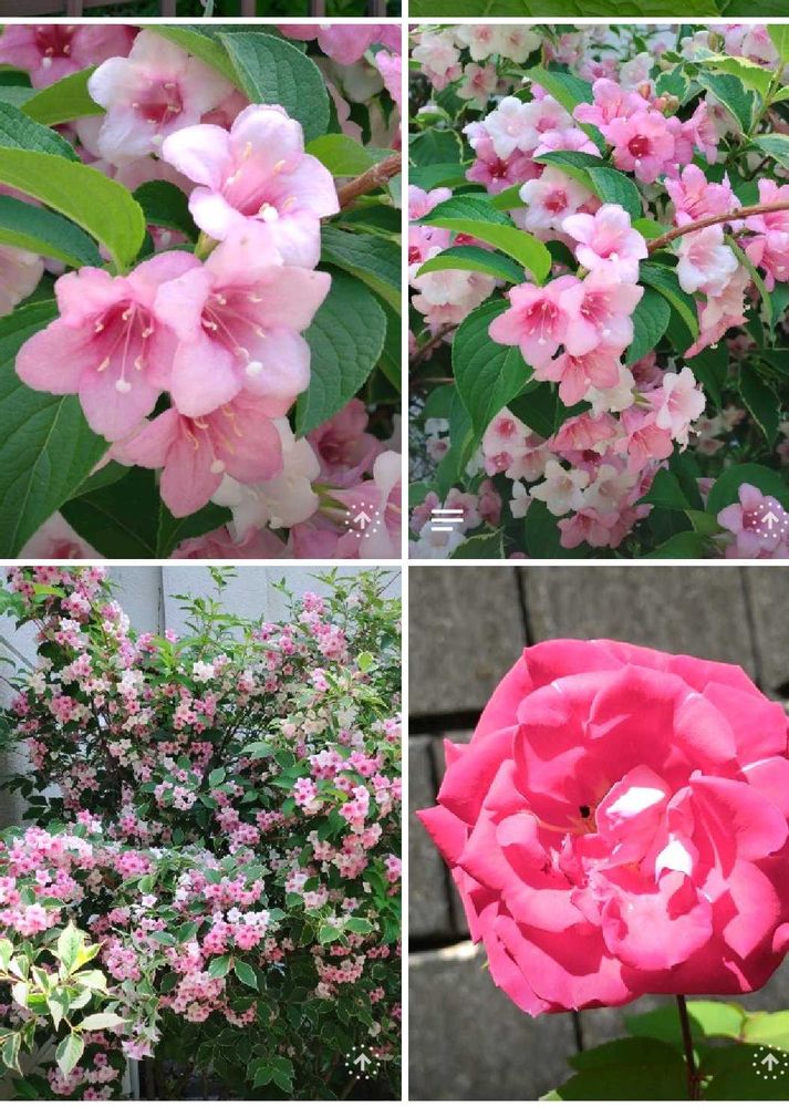 ❶大きな姫空木の木に可愛い🩷のお花と🌹
