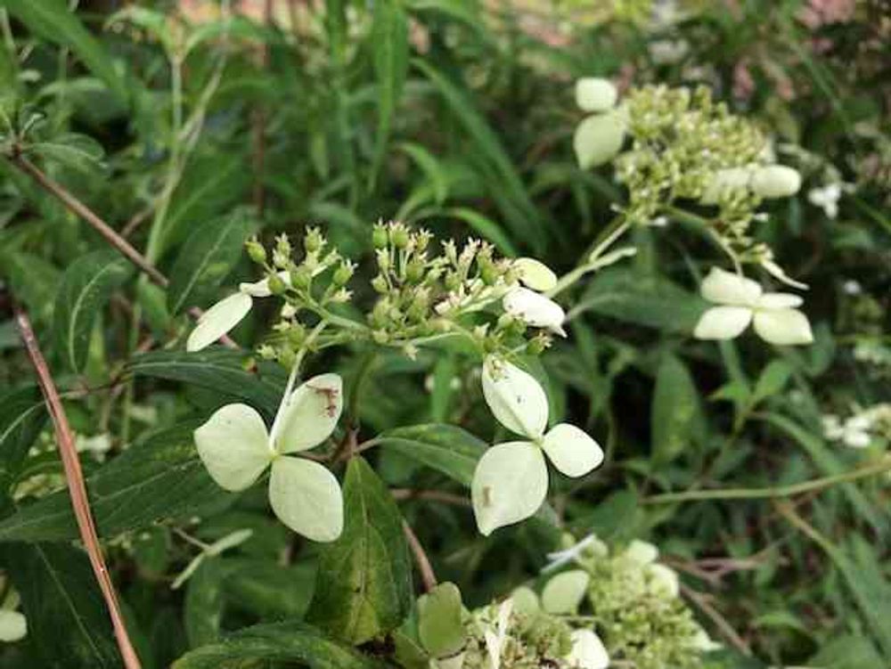 品種名:天城甘茶 少し緑がかってますが本来は真っ白な紫陽花の品種です