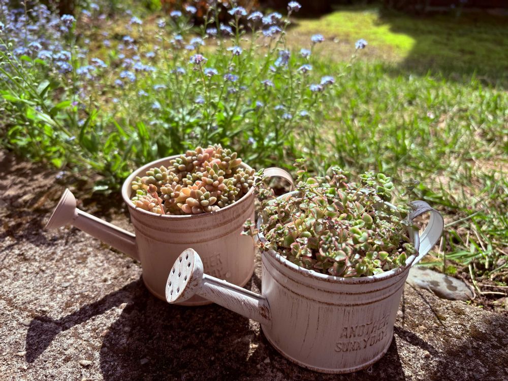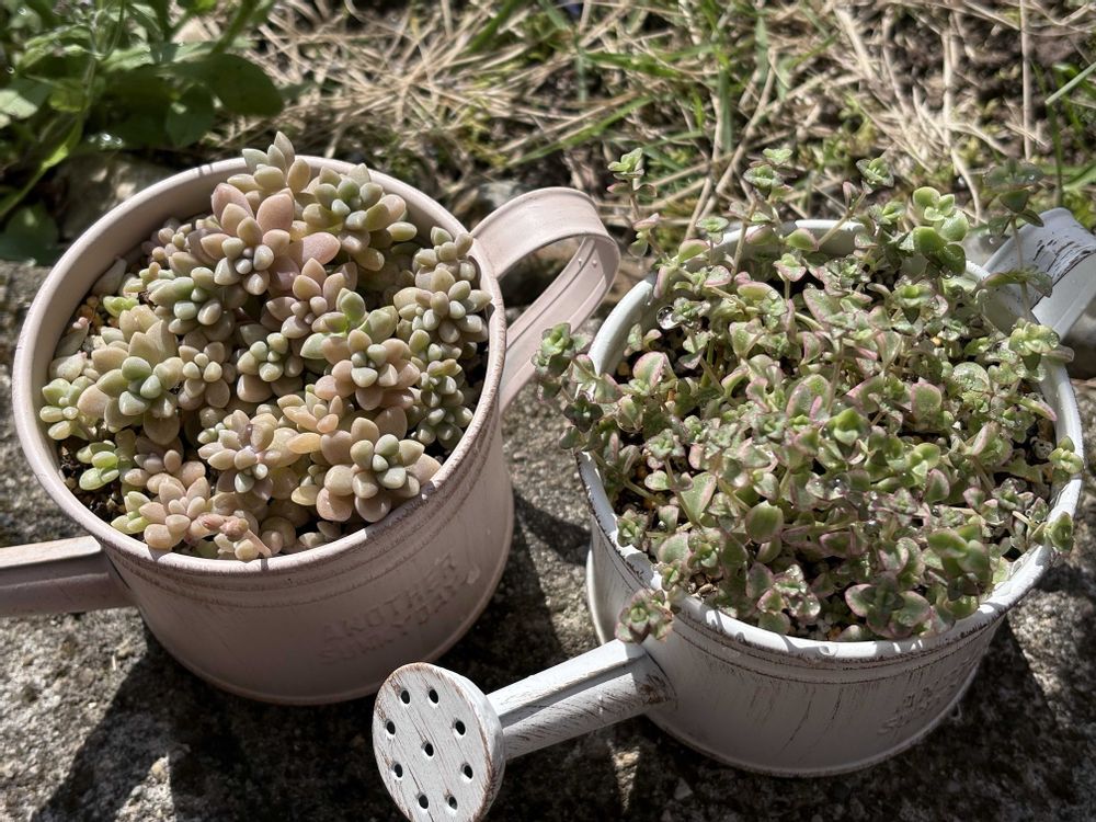姫ちゃんとミッシーちゃん、ブリキ鉢に植替えからモリモリしてくれたので安心😮💨してますが、もう少し大きな鉢で良かったかな〜🤔