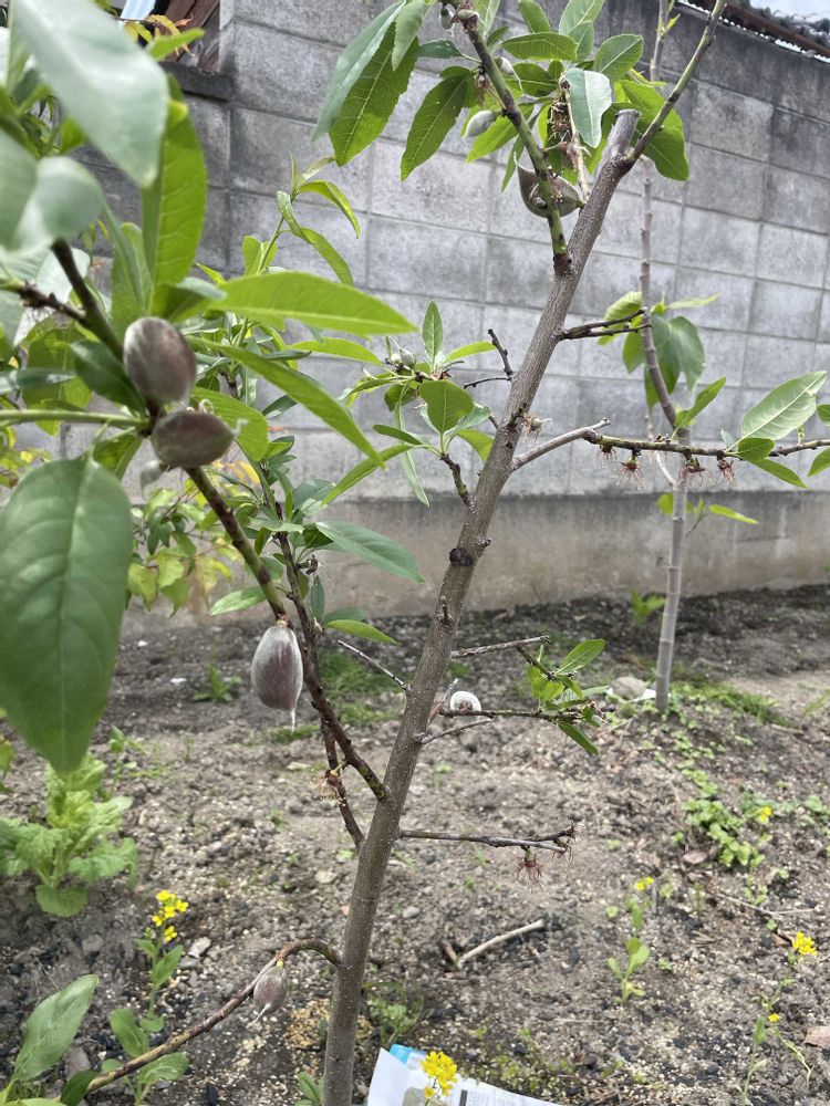 アーモンド苗木買ってから2年目で初めての実がなりました。