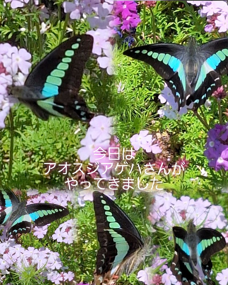 風に揉みくちゃになりながら果敢に吸蜜する💙アオ🩵ちゃん