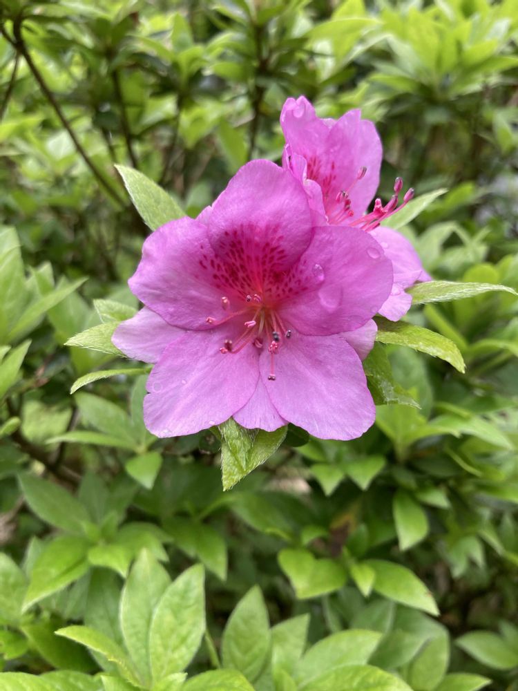 庭の躑躅が咲きました。二重咲き、濃い桃色が綺麗です。
