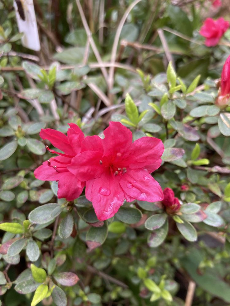 庭の皐月が咲きました。二重咲き、赤色が綺麗です。
