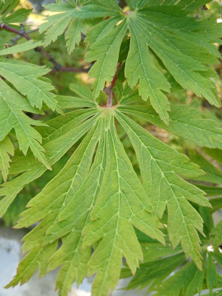 ②羽団扇楓ハウチワカエデの葉の切れ込みは舞孔雀より浅い