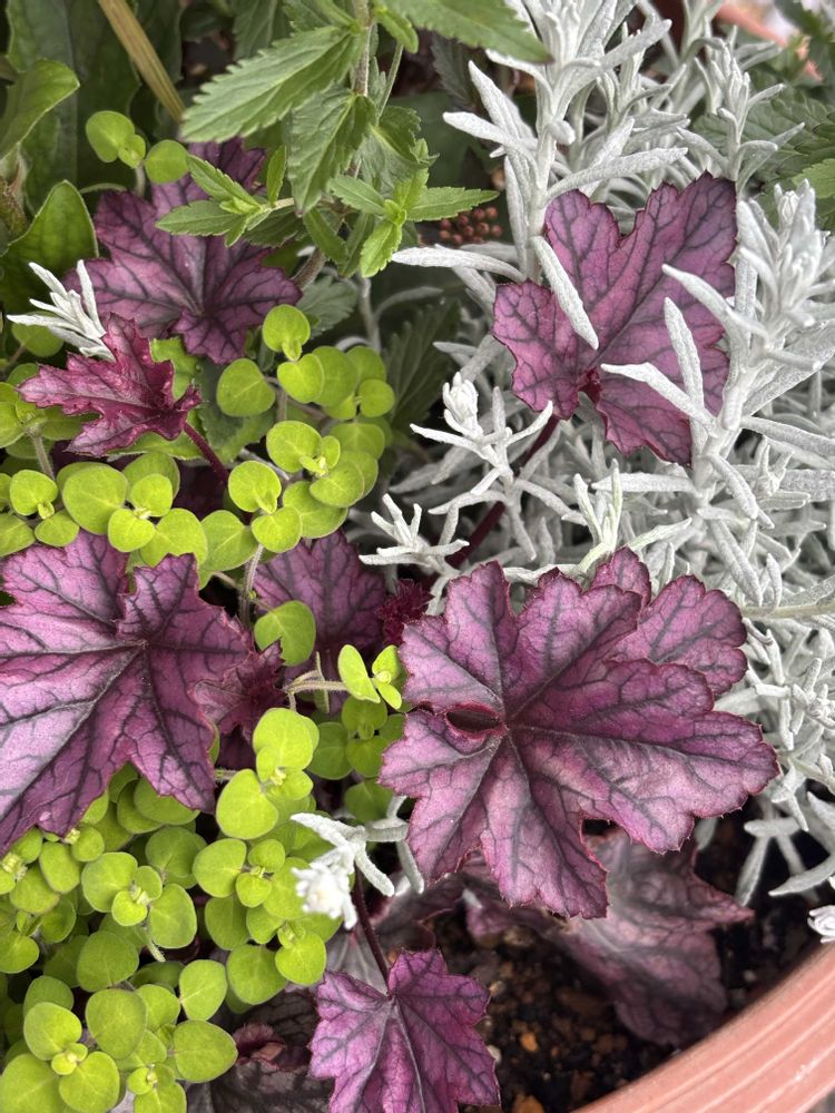 それぞれの花やリーフの変化が楽しみなお気に入りの寄せ植えになりました❣️