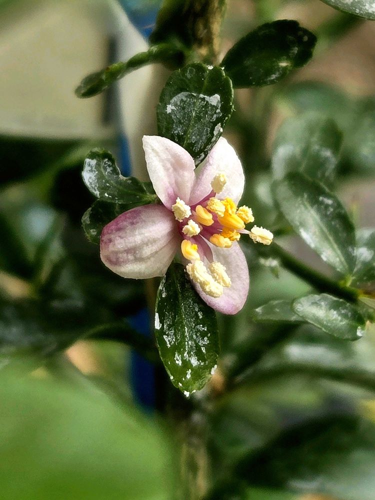 フィンガーライムの苗、ポツポツと小さな花が咲きます