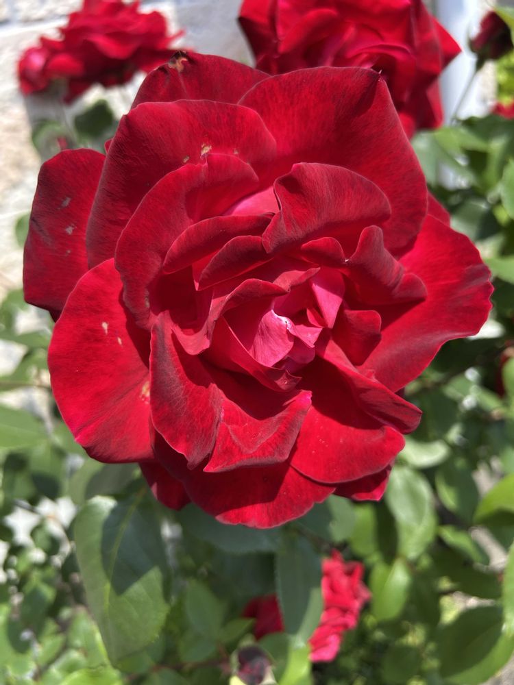 昨年に続き第一号はこの赤薔薇でした🌹4月29日に開花したから、かなり開いてますね🥰すごく大輪で何センチあるんだろう😳香りは微香かなぁ❤️母が植えた薔薇だから名前はわかりませんが、10年以上咲いてます✨