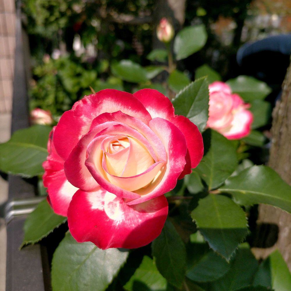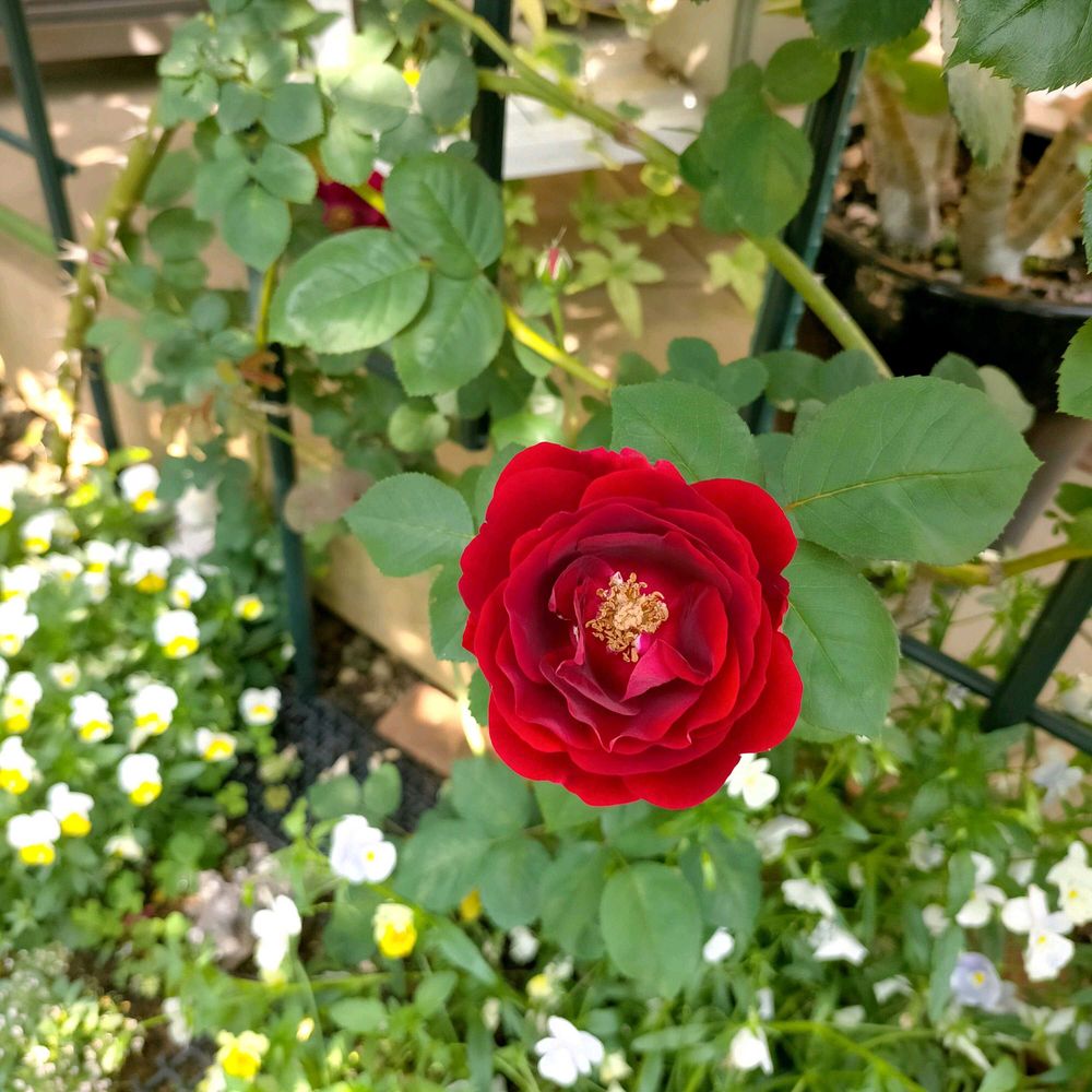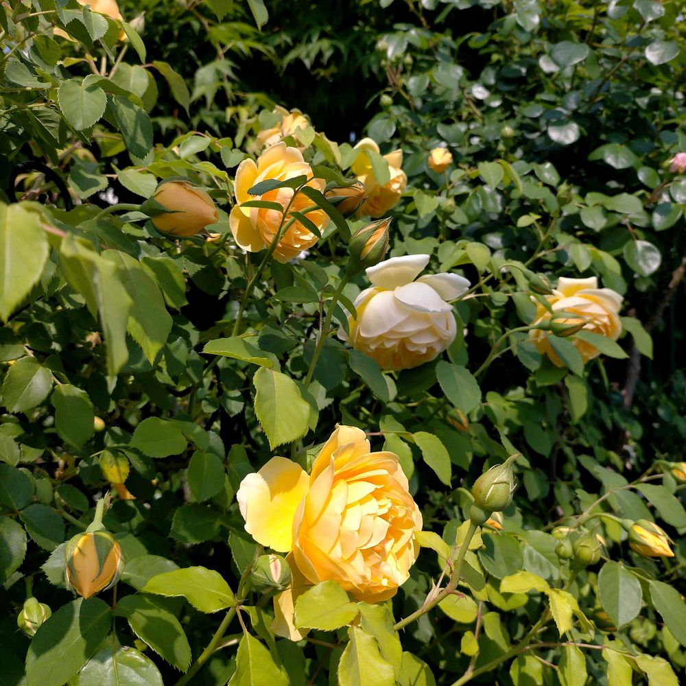 【3枚目】ずーっと瀕死のまま、それでも毎年咲いてくれるオールドローズのスヴニール・ドゥ・ドクトル・ジャメイン。今年は今のところお花が2〜3個かな?💦💦 写真には出ませんが、深いボルドー色で素敵なんですよ☺️