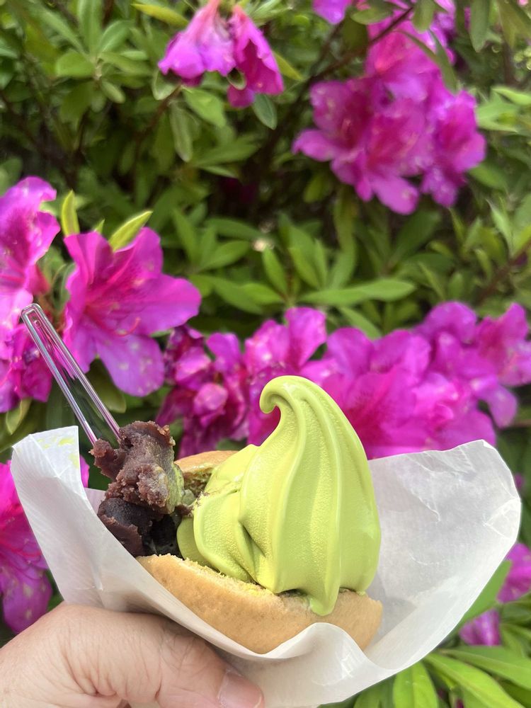 神代植物園内にはバラのソフトは有りますが 列をなしていたので 深大寺参道に出て 蕎麦パンソフトにあんこもトッピングして貰って美味しく頂きました😋