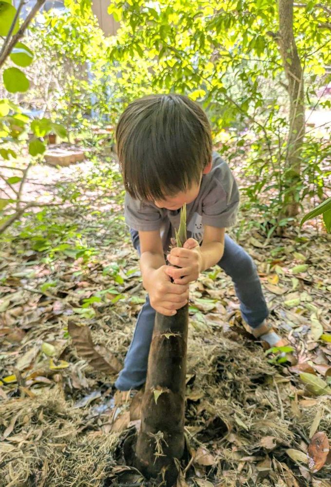 成長速度は…コヤツ🧒も負けてない!😂でっかいタケノコに挑む姿が力強い‼️たっくんも、もう来年は小学生かぁ。。