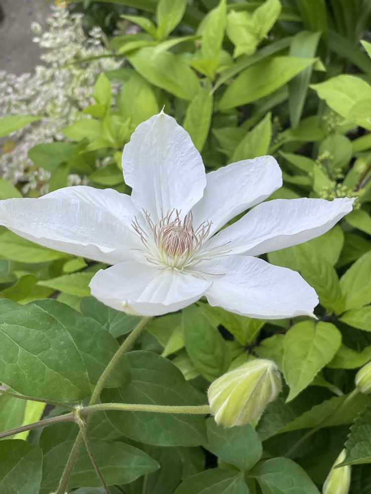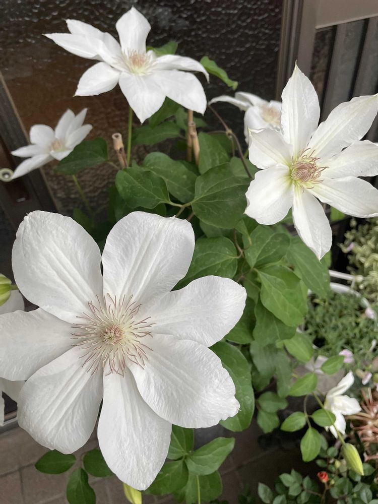 白のシンプルなクレマチスが欲しくて昨年お迎えして、今年も綺麗に咲いてくれました🎶