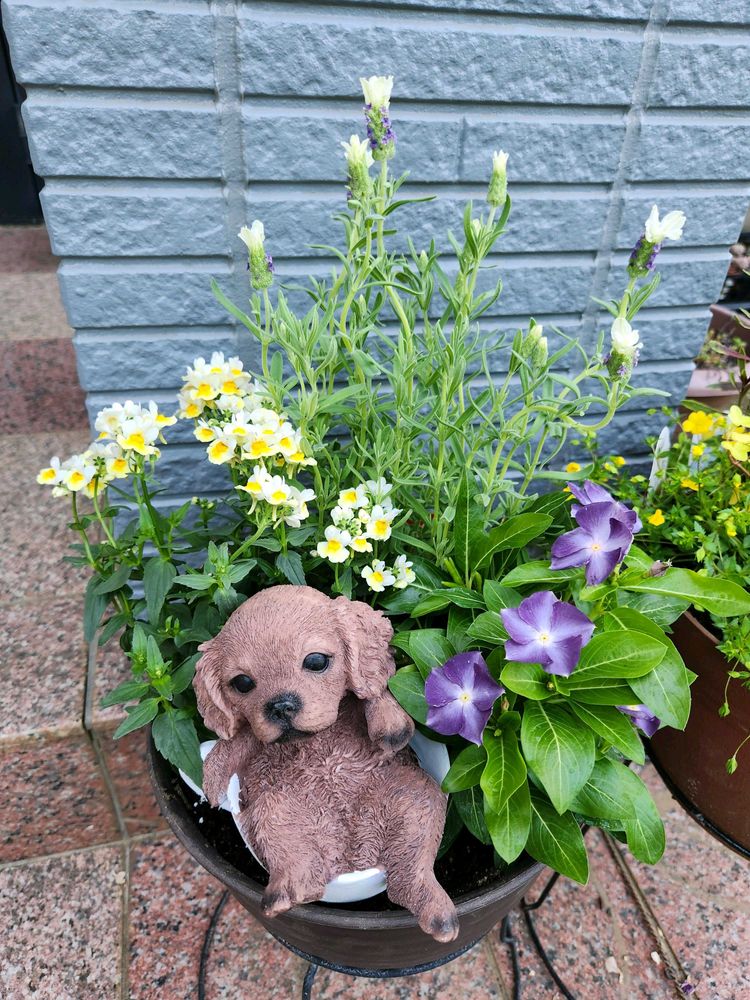 本当はもう1種プラスして植えるつもりでしたが、なかなか気に入った苗が見つからず、最終的に毎度お決まりのオブジェをドォーン🤣