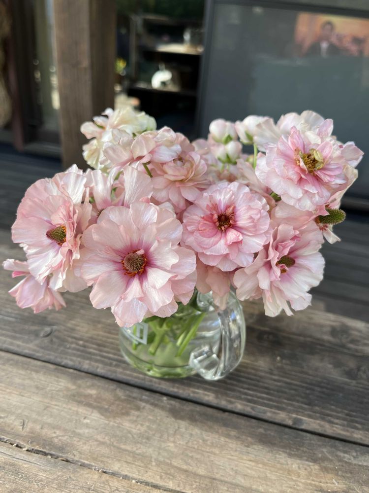 このアリアドネは思いの外まだまだ元気そうなお花がたくさん残っていて、カットして集めてみたらブーケのように可愛かったのでカップに挿しました🎶