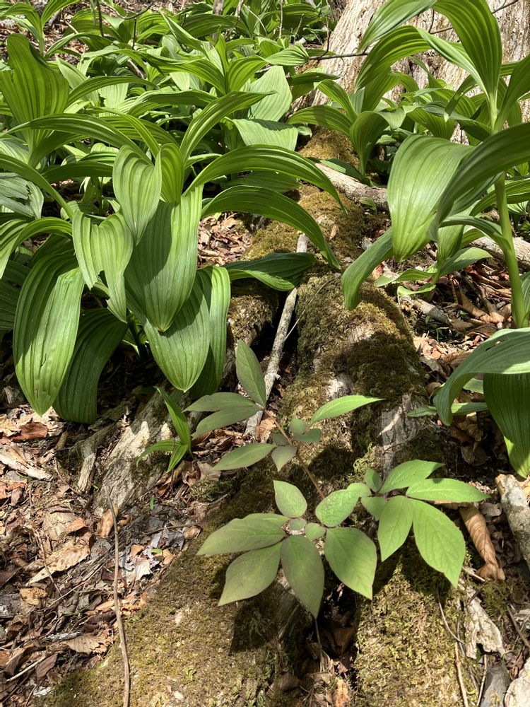 有田川町内。バイケイソウとヤマシャクヤクが混生しています。