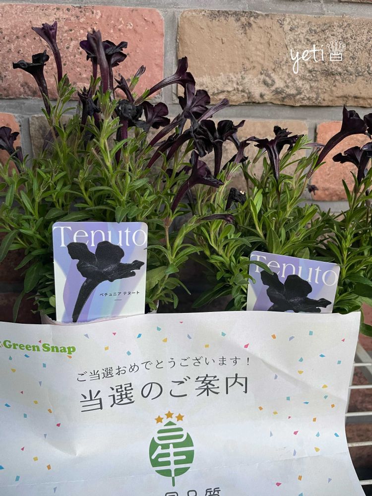 豊明市場✖️GreenSnapのオリジナルブランド「三ツ星品質」さんの『ペチュニア テヌート』のモニターに当選しました♪ ありがとうございます。くーっっ😆おしゃれすぎる花色ですぅ🖤楽譜記号のテヌートに由来するお名前だとか✨これは寄せ植えの中でしっかりtenutoの働きをしてくれそうです✨ひゃーカッコ良い!植え付けが楽しみです♪さっ、園芸店行ってきまーす💨