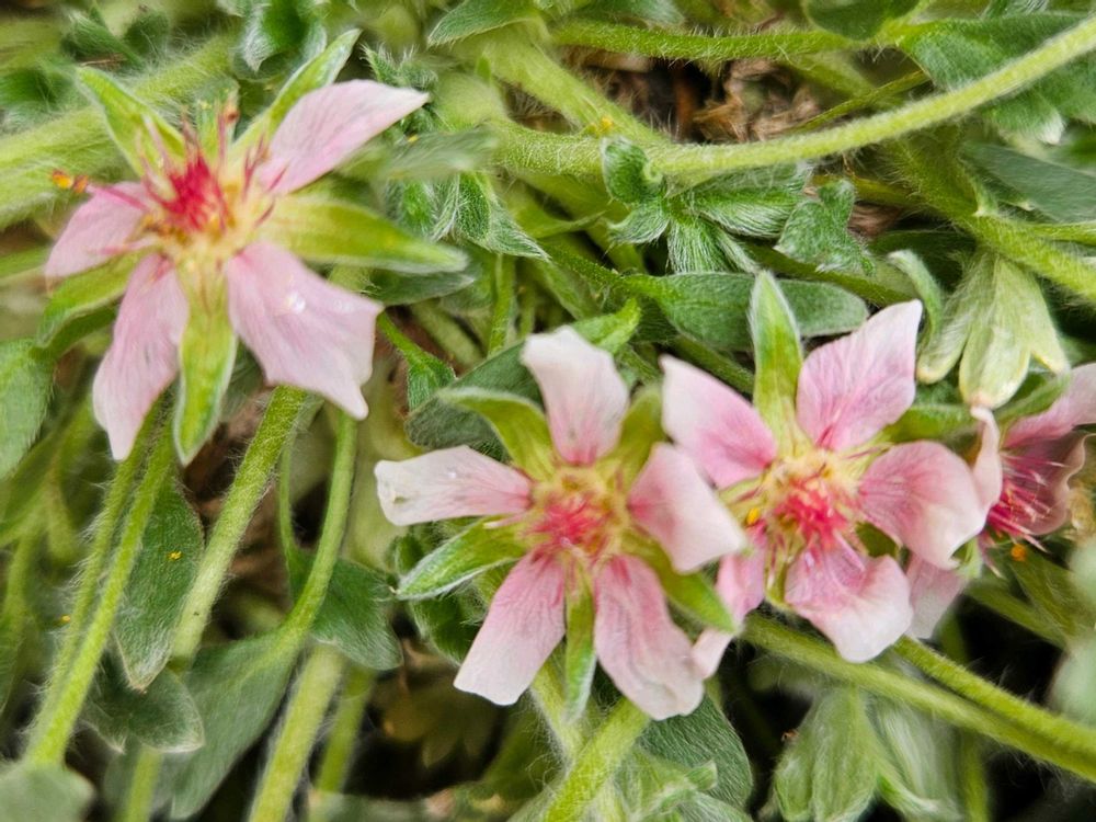 このポテンティラ、根元近くに花が咲くので葉っぱを掻き分けて写真を撮りました📸