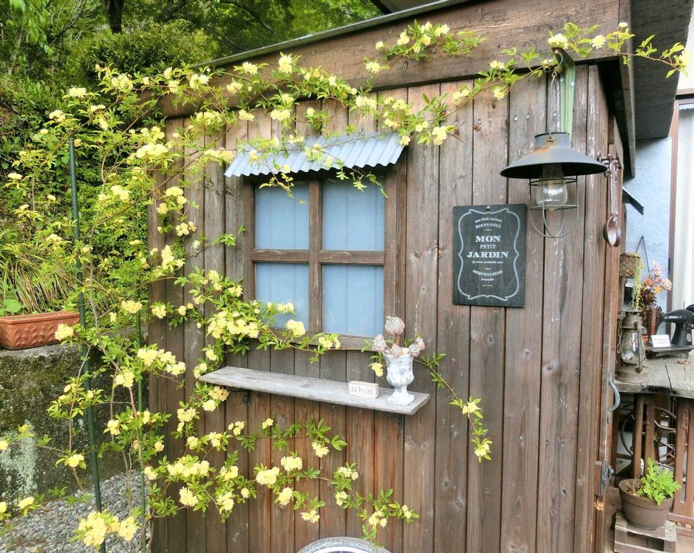 ここここ!ガーデン小屋〜🚪いい感じですよねぇ〜3年目以後グッと花数増えると思いますよ🌼🌼
