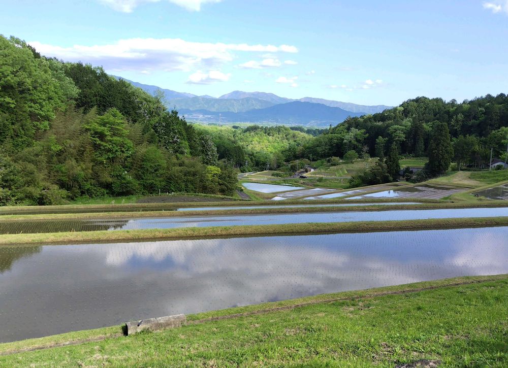 手前の碧々とした山々も水を張った田んぼも美しいです🌳❇️🤗