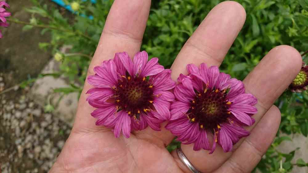 このガイラルディアは、花の大きさが可愛い中輪の品種で、花芯が黒く花首が長いのも特徴です。