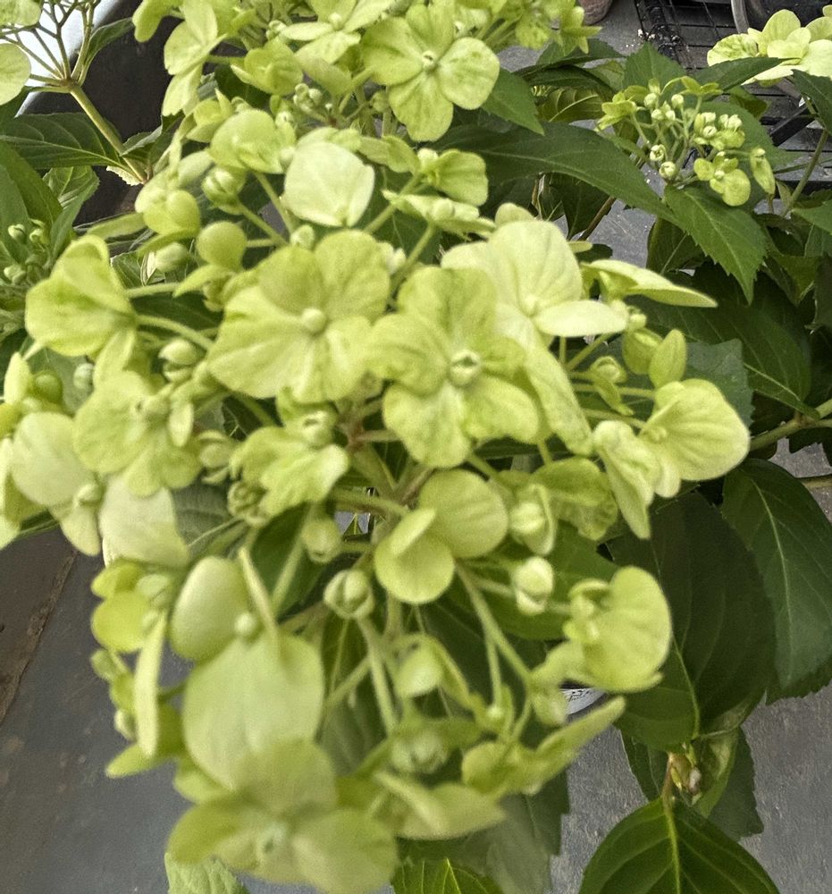 シャンデリーニは、手毬咲きで初めはライムグリーンの花色なのですが段々ホワイトに変わります。楽しみです😊