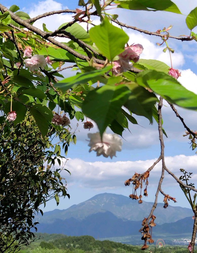 ④八重桜越しの恵那山🌸⛰️🌸