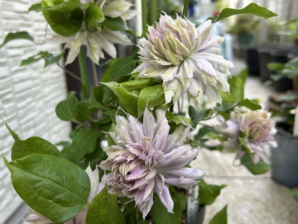 これだけ花付きが良くて、コンパクトならかなり需要があるクレマチスだなと思います。ツルが裂けて樹皮一枚で繋がっているだけでも花が咲いています。