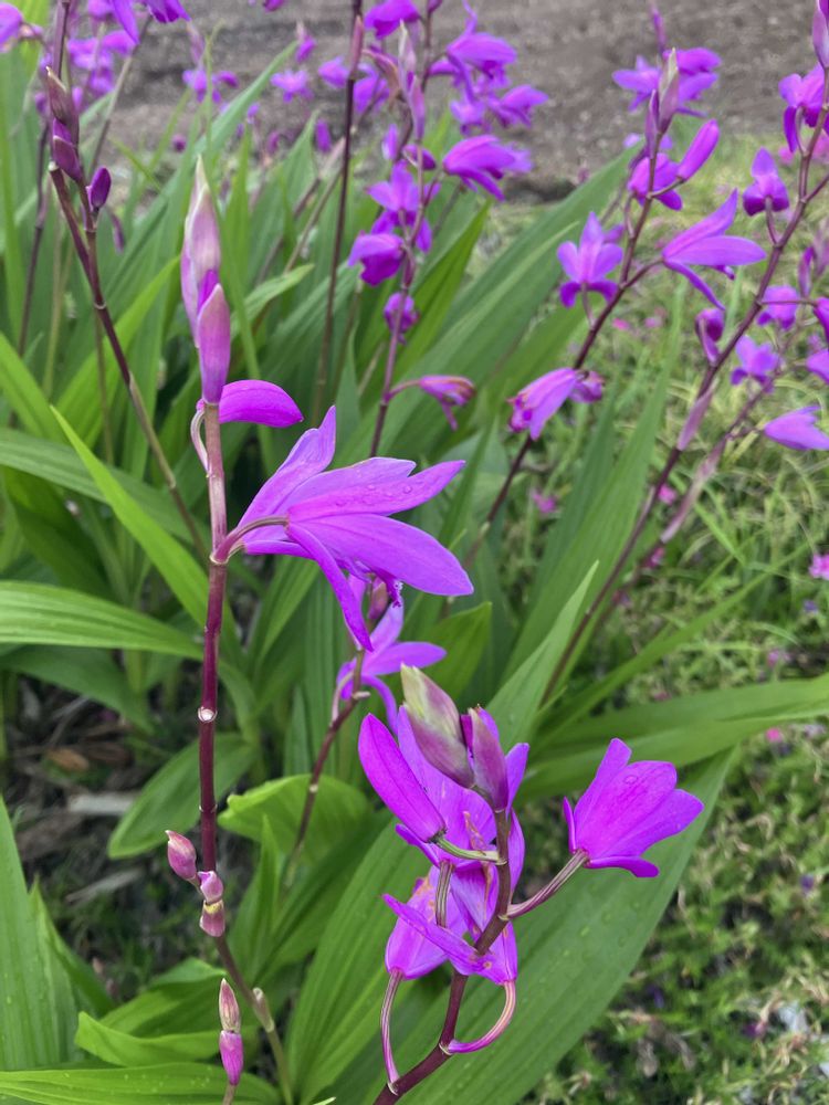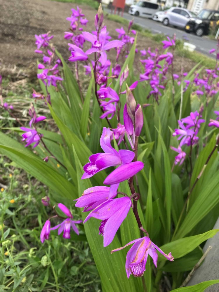 近所の道端に咲く白花シランと紫蘭🤍💜