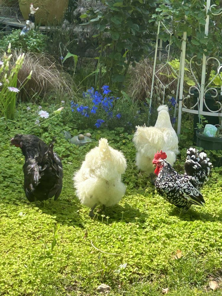 バラの季節になり毎日朝が楽しみですね。(此方はまだ硬い蕾ですが😅)ニワトリさんのお散歩ほのぼの〜 穏やかな景色で素敵ですね。見せて頂きありがとうございます🎶 フワフワの羽根が綺麗〜💕