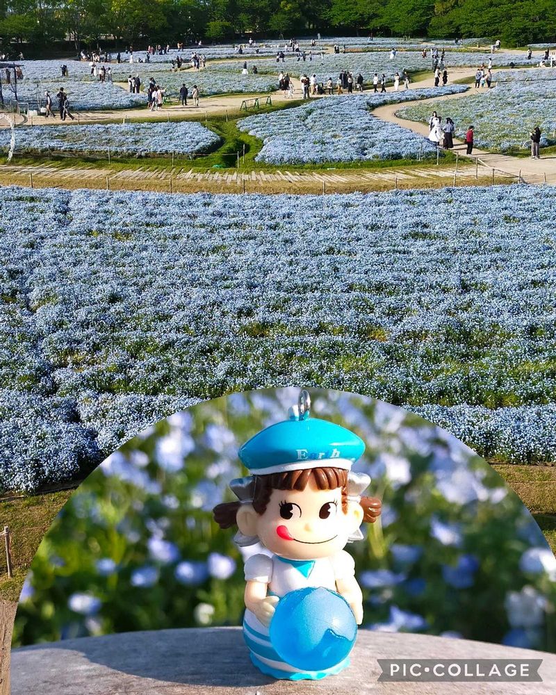ペコちゃんと、ネモフィラ畑、綺麗〜💙