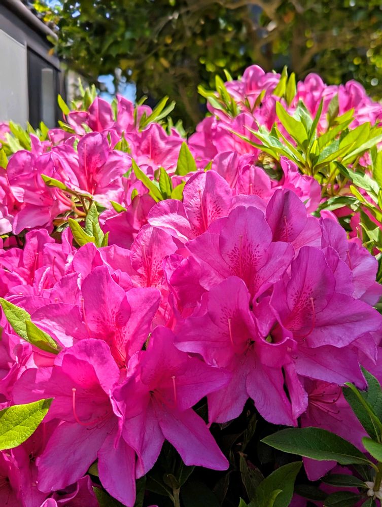 八重咲き(バラ咲き)と一重のツツジが一緒に咲いて今が一番華やかです😊