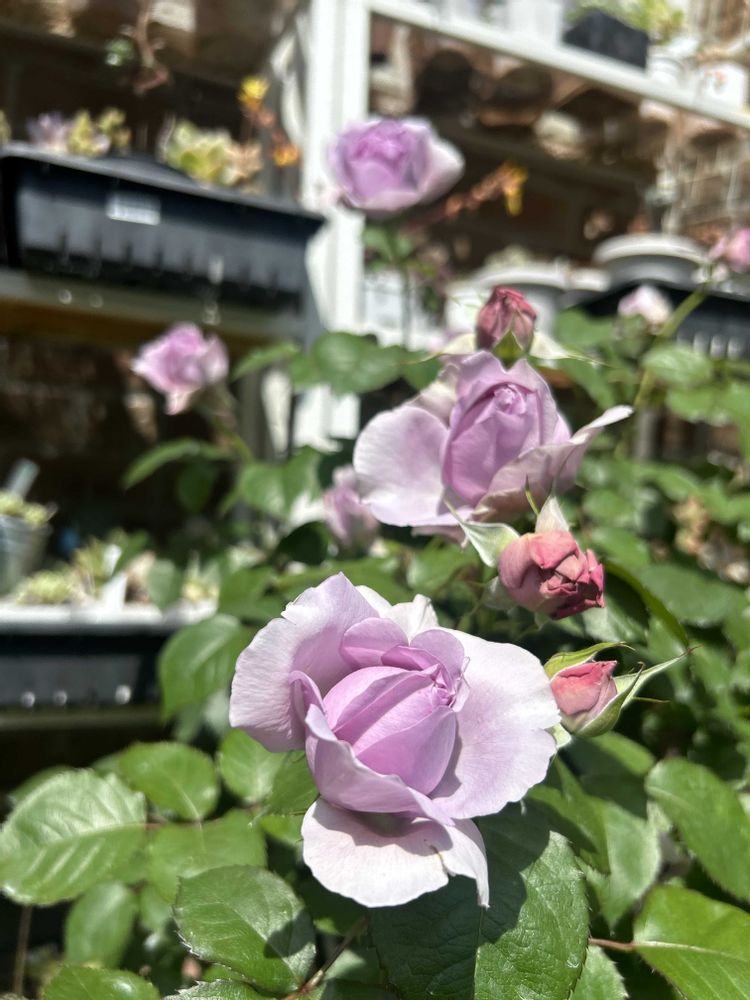 およよばれちゃった(//>▽<//)多肉とバラが日当たりの取り合いしてます♡