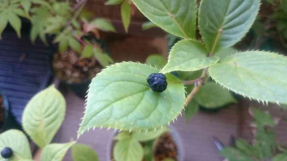 ハナイカダの実がしおしおになってきました。