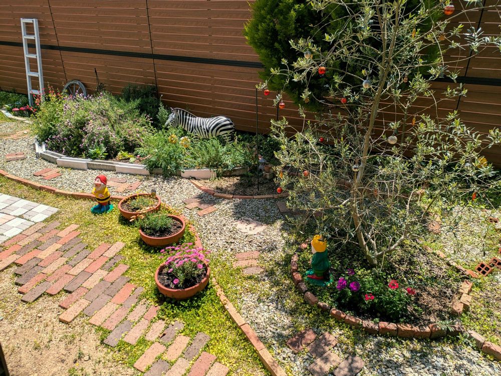 まだ、樹や花など色々植えてみたりしてお庭作り模索中です💦 いつか、樹の木陰で草取りをしながら、疲れたらお茶ができるようなお庭になったらなぁ☺️ 何年か後を想像しつつ、出来るときにコツコツ頑張っています🏵️