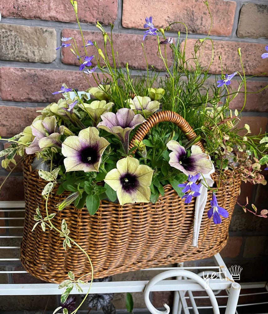 フマキラー ファンハウス ムーンライトとロベリア パラシオンブルーで寄せ植え作りました🎵園芸店でであった斑入りのアケビがかわいくてファンハウスムーンライトと合わせたらいい感じ✨になりました。アケビあんまり見えてないですけどね😁