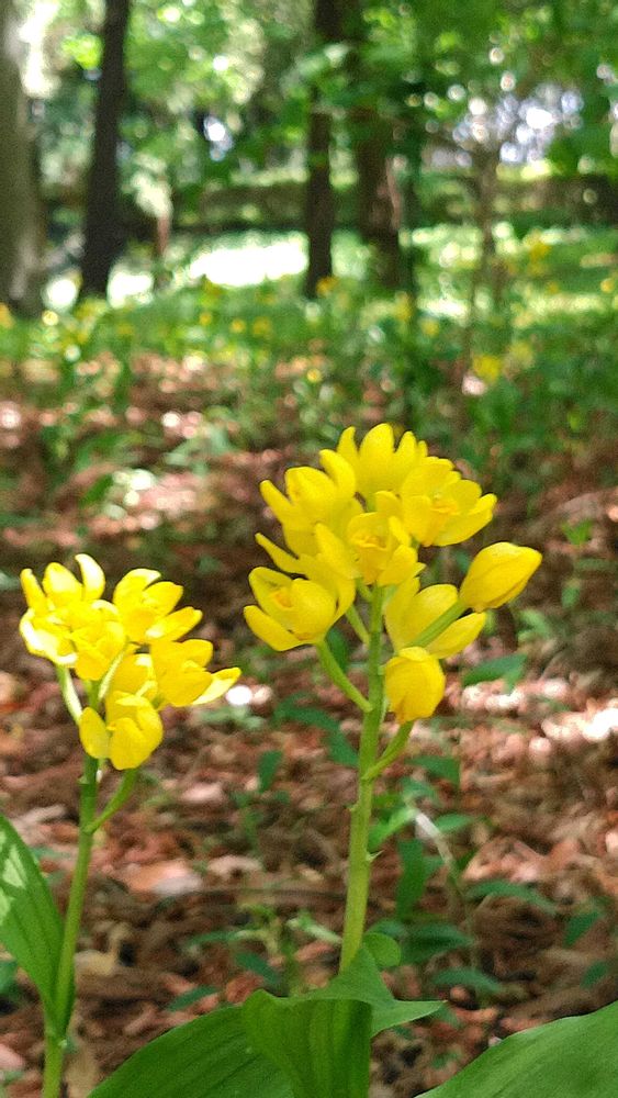 いつもウォーキングしている緑地公園…今年はこの小さな黄色い花が群生していることに気付きました。ロープで囲われているところも!👀!