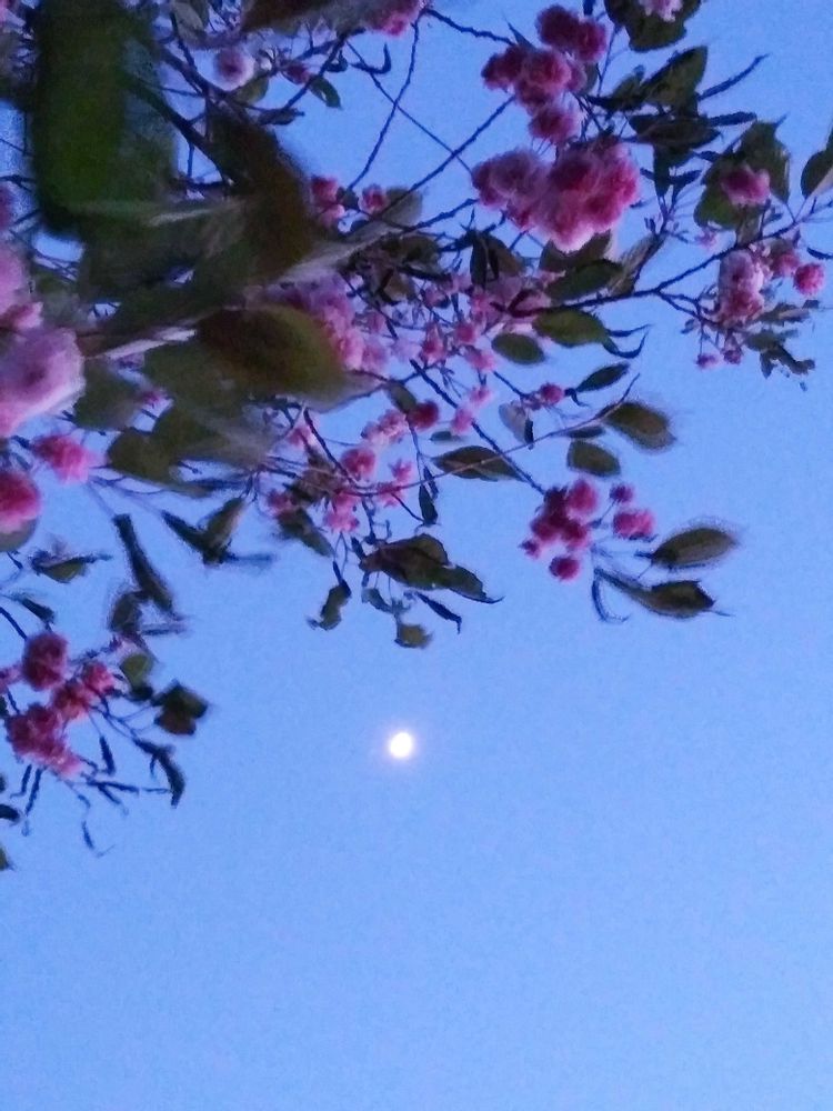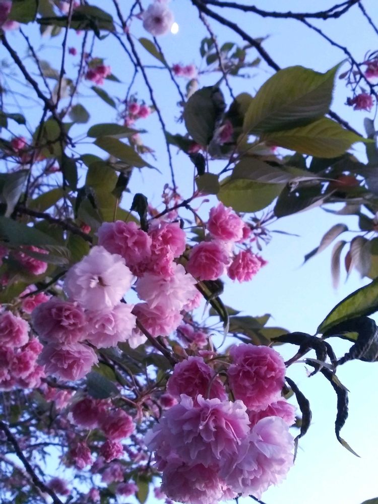 昨日の上弦のお月様🌓と八重桜🌸✨