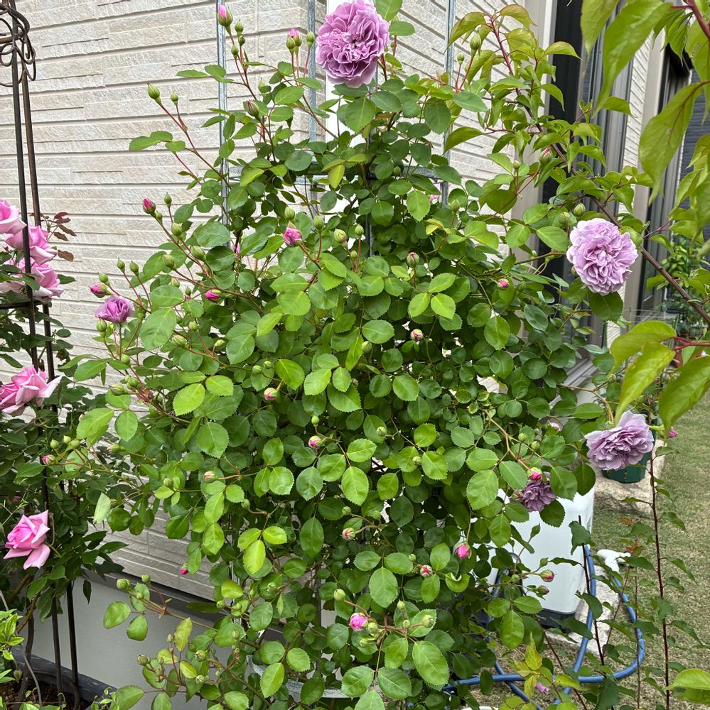 半つる薔薇とかオベリスクへ誘引するのは良いんやけど、木立薔薇ってどんな樹形にしたら良いんかよく分からん(笑)