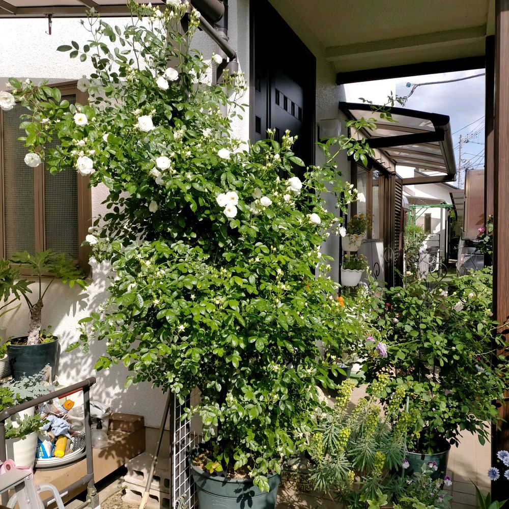 これ鉢植えなんですよー😁 鉢植えでこんなに元気に育つバラは(うちでは)珍しいかも。すごく丈夫なんだと思います👍