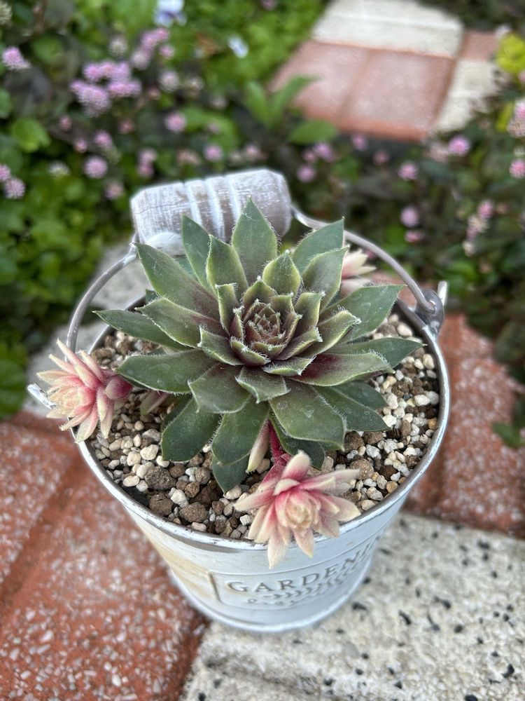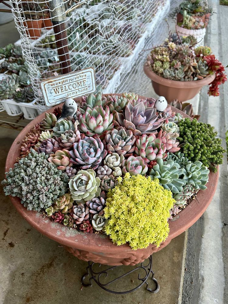 大鉢の寄せ植えにシマエナガのピックを飾ってみました🤗