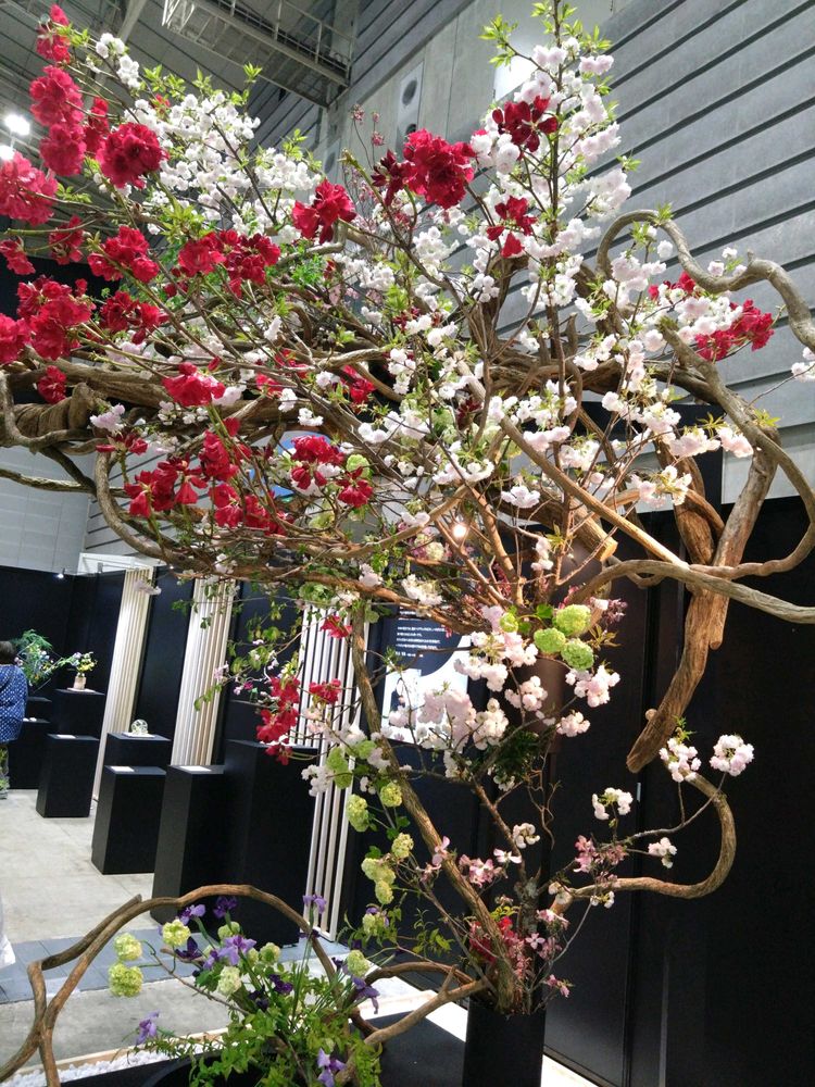 一枚目のお写真と、1つ前の投稿の4枚目の、白バラを中心としたドーム型のブーケは、フランス人フラワーデザイナーのローラン・ボーニッシュさんの作品です。大人気のコーナーで、人が多くて写真を撮るのも大変。本人もいらっしゃいました。