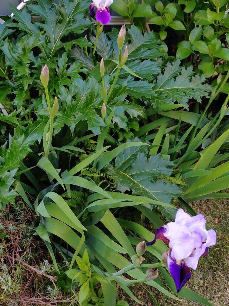 庭の花が、咲いたと、隣のお姉さんが、ラインで、知らせてくれました😍💚ジャーマンアイリス💜4年目💜